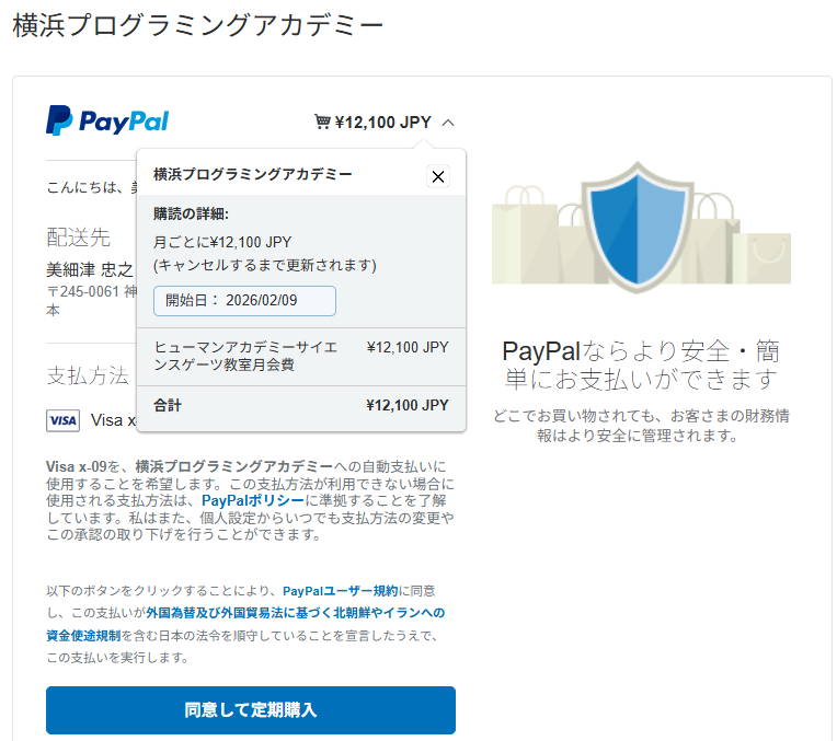 Paypal によるお支払い手続きは下の “購読”ボタンよりお支払い画面にお進み下さい。